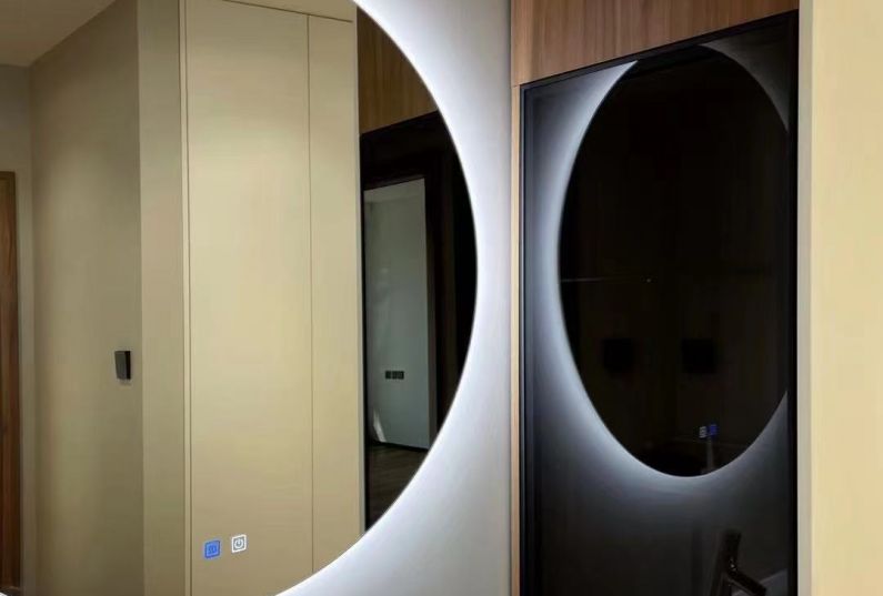 原有的卫生间是竖长型,布局虽规整却使隔壁主卧的面积过为宽大浪费。调整方向之后多余的空间拿来做次卫湿区,把洗手盆外置,增加灯光镜面,利用旁边柜体侧面格架做洗漱收纳,灯光交相辉映,成为整个房间的亮点所在。