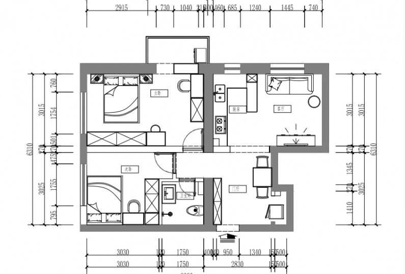 设计思路:业主是一对年轻夫妇,因为平时工作忙,对于卫生间和客厅的使用频率较高。