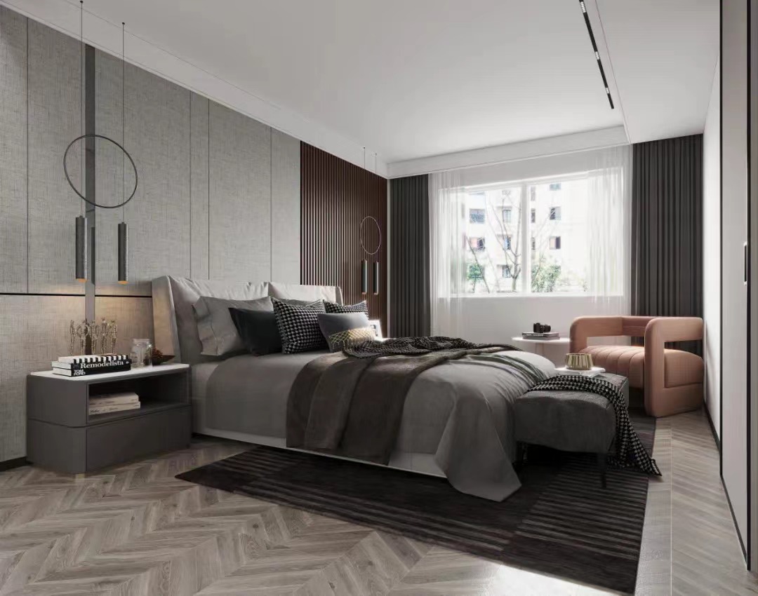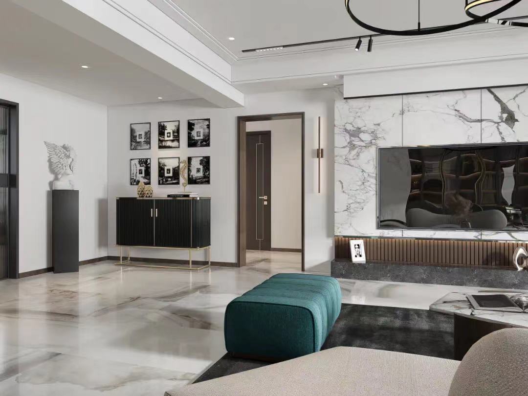 家的丰富,生活的尺度,都离不开对空间结构与比例的考量,整体色调以黑,白,灰加上莫兰迪灰以及一些金色的收边,大面积石材加上现代感十足的家具灯饰,展现一处”进退有度“的场所