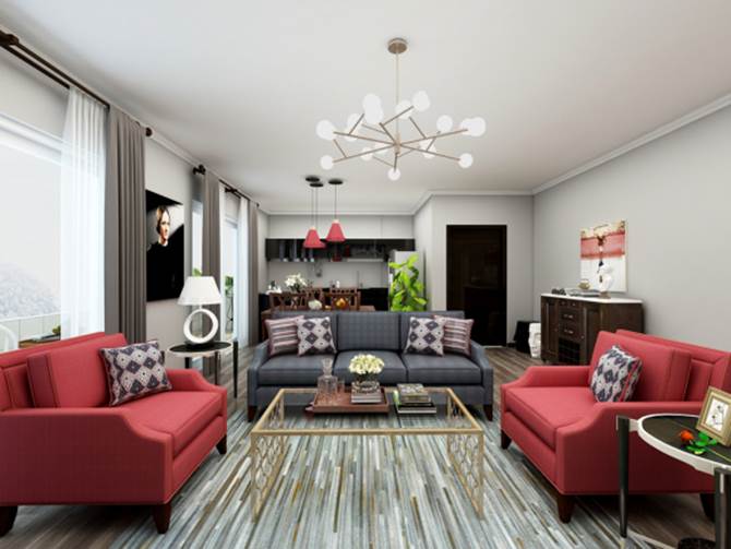 活泼、性感、喜庆的红色,将其凝固在家具、布艺、饰品上,无需繁复的设计,凭借那一抹跳跃色彩,就能使平淡无奇的居家空间,迸发出摩登耀眼的光芒。今天的案例我们就来看下当传统红色遇到现代简约,将如何实现。