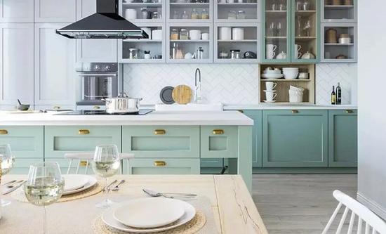 在厨房里面不仅仅只有这些颜色,还可以选择大胆的黄色、蓝色,还有这几年一直大火的蒂凡尼蓝。这样的颜色放置在厨房,能够打破厨房的沉闷感,有时候橱柜的颜色选择能够体现出主人的性格爱好呢。